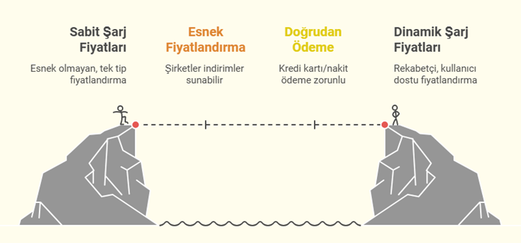 Taslak, esnek fiyatlandırma modelini getirerek şirketlerin belirli saatlerde veya konumlarda indirim yapabilmelerine imkân tanıyor. Buna göre fiyatlar serbestçe belirlenecek ancak rezervasyon ve işgaliye bedellerinin ilan edilmesi zorunlu olacak. Bir diğer deyişle, taslakla birlikte şarj hizmeti ücretlerinde esnek fiyatlandırmaya geçilerek şirketlerin belirli saat ve konumlarda indirim yapabileceği ve böylece rekabetçi bir piyasa yapısı oluşturulmasının amaçlandığı görülüyor. Çeşitli görüşler de taslağın dinamik bir fiyatlandırma modelinin önünü açtığını, yoğun olmayan saatlerde kullanıcıya indirim yapılabileceğini ve bunun fiyat rekabetini artıracağını değerlendiriyor[7]