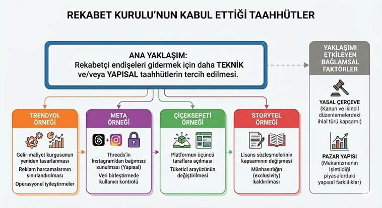 İhlal iddiaları karşısında teşebbüslerin tercih ettiği çözüm, taahhüt mekanizmasından faydalanmak oldu. Bu kapsamda, taraflar için beş yıl süreyle bağlayıcı hale getirilen taahhütler arasında;