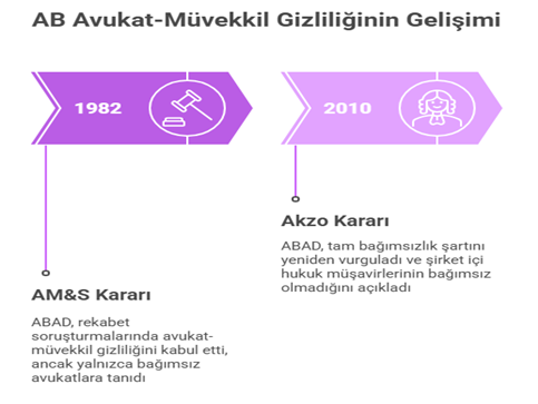 AB’de avukat müvekkil gizliliğinin geçmişi, bir avukat ile müvekkili arasındaki iletişimin ve özellikle bu iletişim kapsamındaki yazışmaların korunması ilkesine dayanıyor. Rekabet hukuku kapsamında yapılan incelemelerde bu imtiyaz, şirketler ile bağımsız dış hukuk danışmanları olan ve profesyonel etik ve meslek kurallarına tabi avukatlar ile yapılan yazışmalara tanınıyor. AB’de ilk olarak bu çizgi, davalar arasından çıkan örnek kararlarla belirlenmişti.